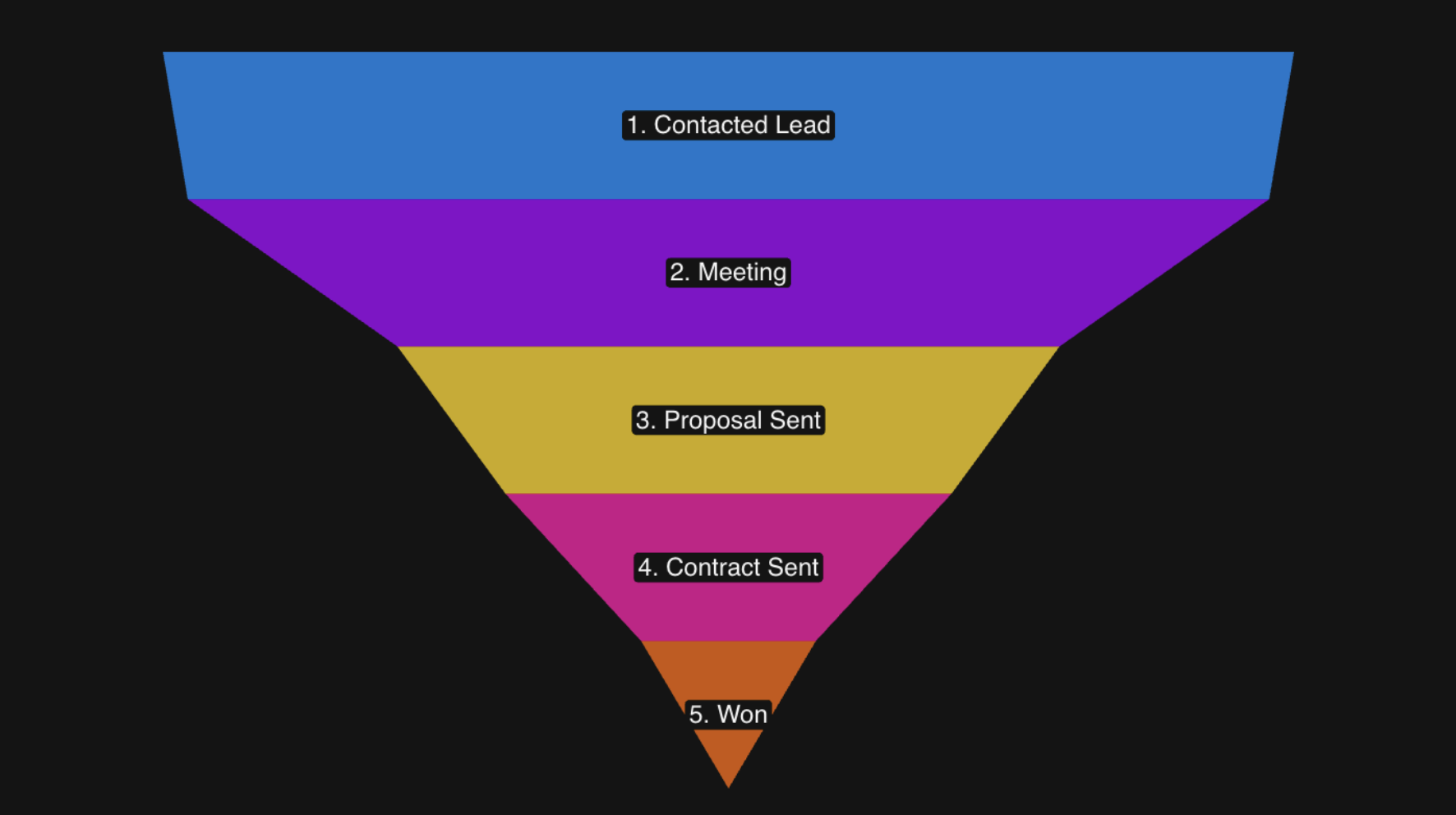 A classic sales-led funnel tracks how leads progress from interest to closed revenue: